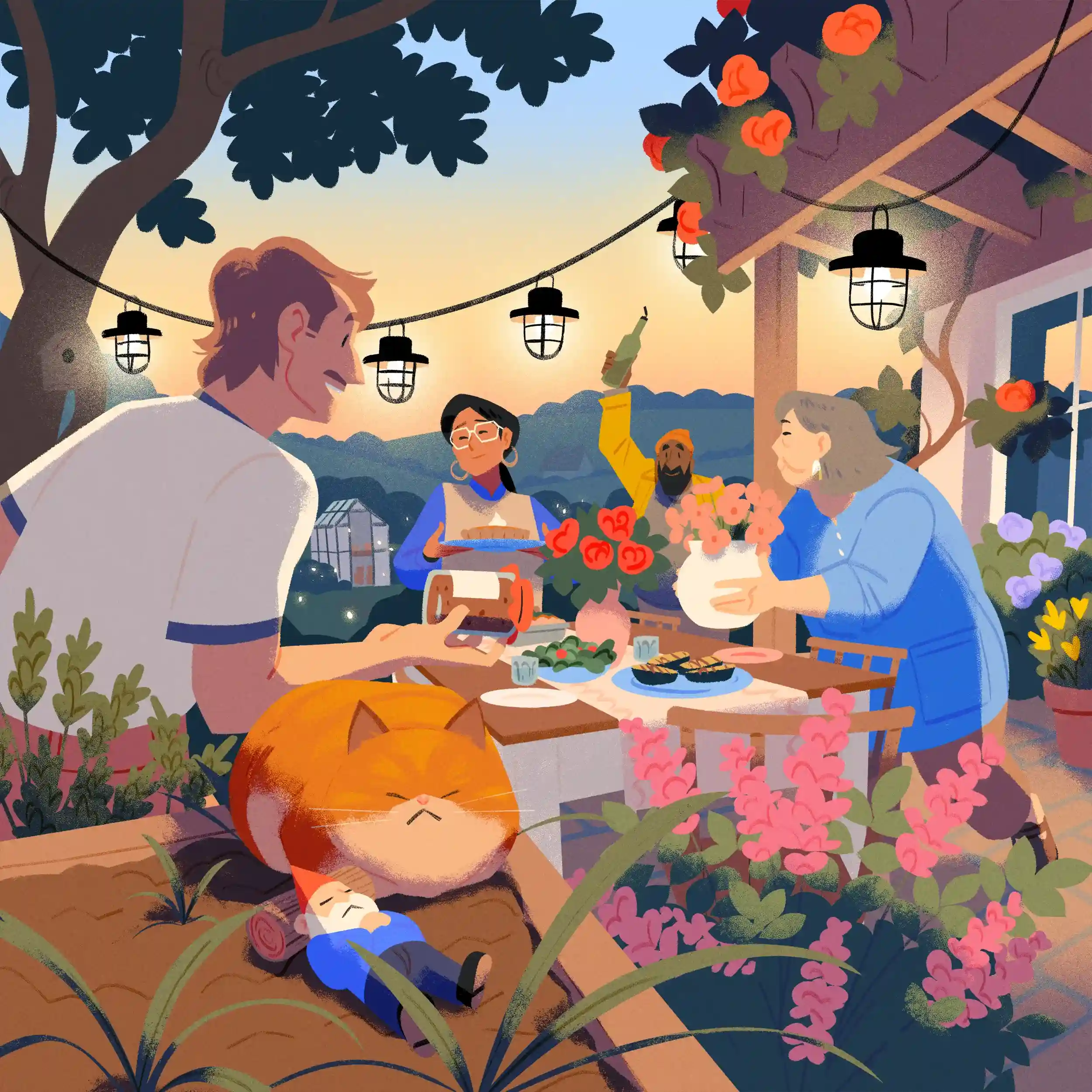 This is a collection of work I created for an animated advertisement for Facebook, ranging from character designs to costume changes to stills for the animation. The story follows Lucia, a young adult with a gardening hobby, and her cat, Pumpkin, and showcases how different features within the app can help users grow their interests, share knowledge, get creative, and support one another.